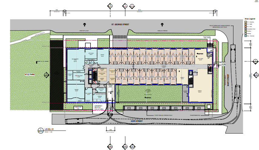 Avenir Senior Living, in partnership with Dulex Laidler Group, has submitted a comprehensive proposal to create a multi-tiered senior community on the 2500 block of St. George Street, adjacent to Kyle Park. With a blend of independent living, assisted care, and complex care options, the development aims to offer a range of housing solutions for seniors in one integrated setting.